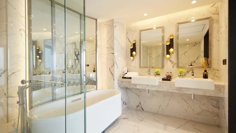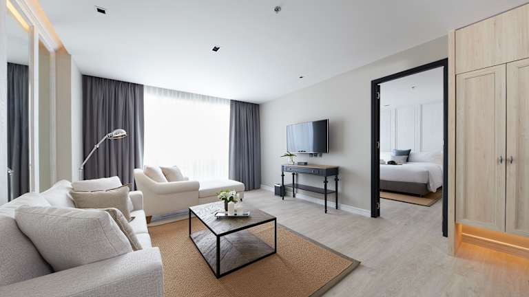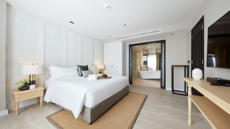 Die klimatisierten Zimmer sind ausgestattet mit einem Kleiderschrank, einem Wasserkocher, einem Kühlschrank, einer Minibar, einem Safe, einem Flachbild-TV und einem eigenen Badezimmer mit Dusche. Einige Zimmer bieten zudem eine Küchenzeile mit Mikrowelle.