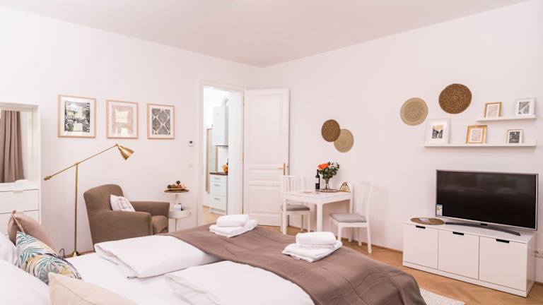 Das Heart of Ottakring ist ein gemütliches Apartment im Wiener Bezirk Ottakring, das sich in der Nähe der Wiener Stadthalle befindet. Mit einer Terrasse, kostenfreiem WLAN und einer Waschmaschine bietet es alle Annehmlichkeiten, um Ihren Aufenthalt in Wien angenehm zu gestalten. Das Apartment verfügt über ein Schlafzimmer, ein Badezimmer, eine voll ausgestattete Küche und einen Balkon mit Blick auf die Stadt. Die Lage des Apartments ermöglicht es Ihnen, die Wiener Sehenswürdigkeiten wie das Leopold Museum, das Naturkundemuseum und das Wiener Rathaus bequem zu erreichen. Der internationale Flughafen Wien ist ebenfalls gut erreichbar.