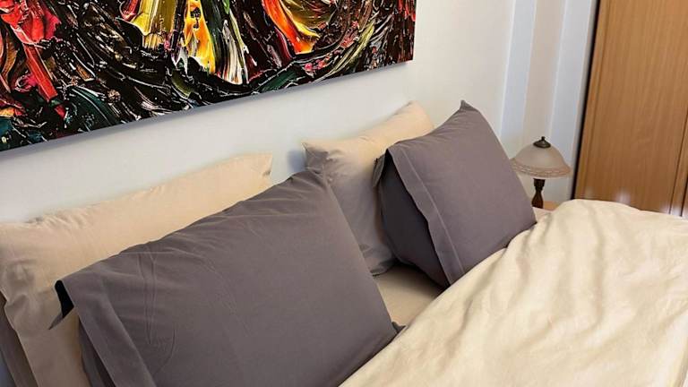 Die Ferienwohnung umfasst 1 Schlafzimmer, ein Wohnzimmer, einen Essbereich sowie eine Küche mit einem Kühlschrank. Zur Ausstattung gehören Klimaanlage, Flachbild-TV, Wasserkocher und die Bereitstellung von Handtüchern und Bettwäsche.