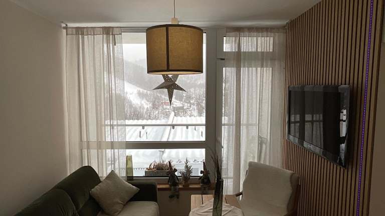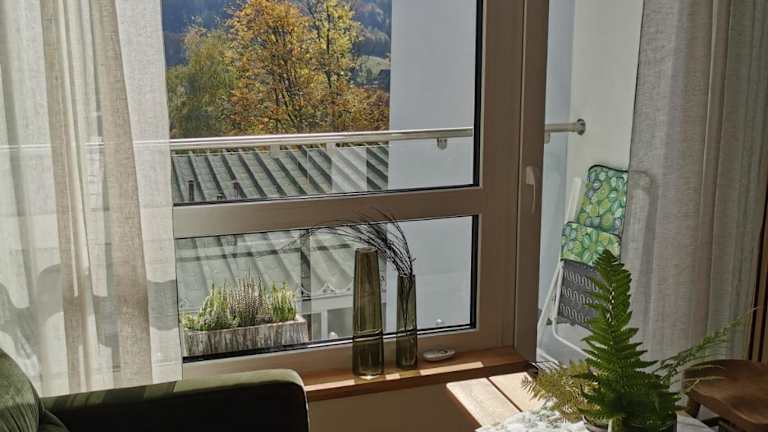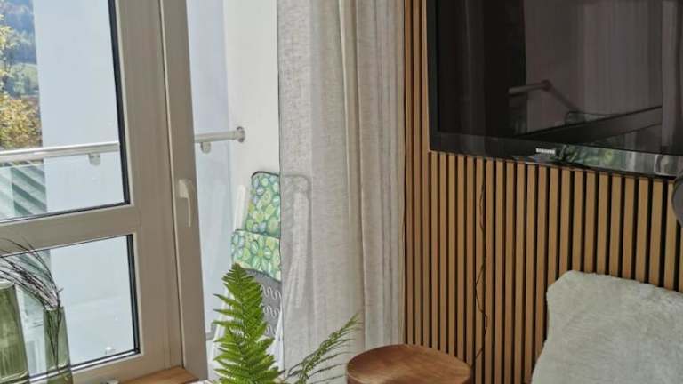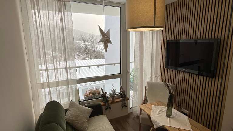 Die Ferienwohnung beinhaltet 1 Schlafzimmer, ein Wohnzimmer und einen Balkon mit Bergblick. Zur Ausstattung gehören ein Flachbild-TV, eine gut ausgestattete Küchenzeile mit Kühlschrank und Ofen sowie ein Badezimmer mit Dusche. Handtücher und Bettwäsche sind ebenfalls vorhanden.