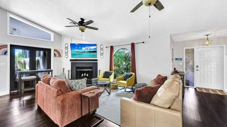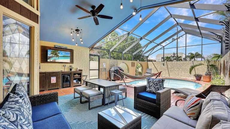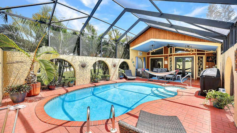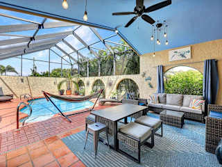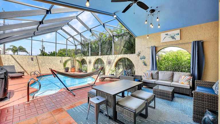 Heated Pool, Sleeps 10, Relaxing Lanai, Near Beaches, Pet Friendly! bietet eine Villa mit Poolblick und kostenfreien Fahrrädern. Zur Ausstattung gehört ein Außenpool, eine Terrasse, ein eigener Garten sowie ein Grill. Die Unterkunft ist klimatisiert und bietet Platz für bis zu 10 Gäste.