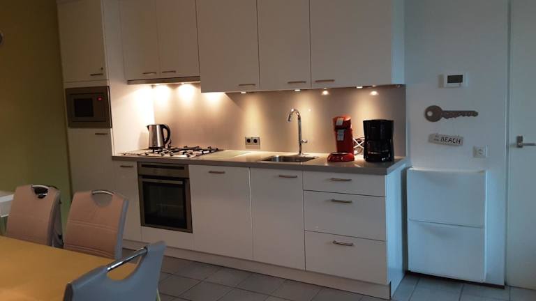 Die Unterkunft Heggerank 5B verfügt über eine voll ausgestattete Küche, die Annehmlichkeiten wie einen Kühlschrank, einen Geschirrspüler, eine Waschmaschine, eine Mikrowelle und eine Herdplatte umfasst.