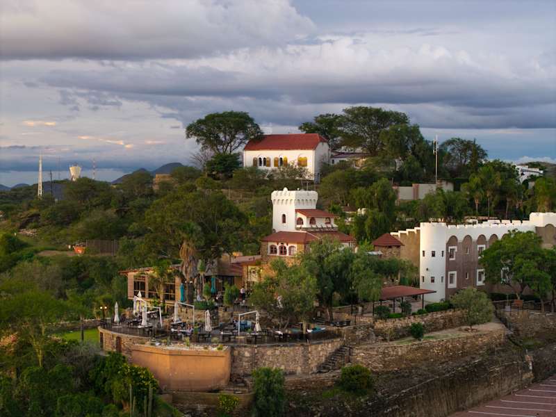 Das Hotel Heinitzburg ist ein beeindruckendes, restauriertes Schloss auf einem Berg in Windhoek. Es bietet seinen Gästen eine einzigartige Architektur, gepflegte Gärten mit einem Pool, einen Weinkeller und zwei Restaurants. Die elegant und klassisch eingerichteten Zimmer sind klimatisiert und verfügen über Annehmlichkeiten wie eine Minibar, einen Flachbild-Sat-TV und ein eigenes Badezimmer. Das Gourmetrestaurant Leo's at the Castle bietet exquisite Speisen mit Blick auf die Skyline der Stadt, während im Garden Terrace Snacks und Erfrischungen mit Blick auf die umliegenden Berge serviert werden. Der Poolbereich mit Liegestühlen lädt zum Entspannen ein. WLAN und Parkplätze stehen kostenfrei zur Verfügung.