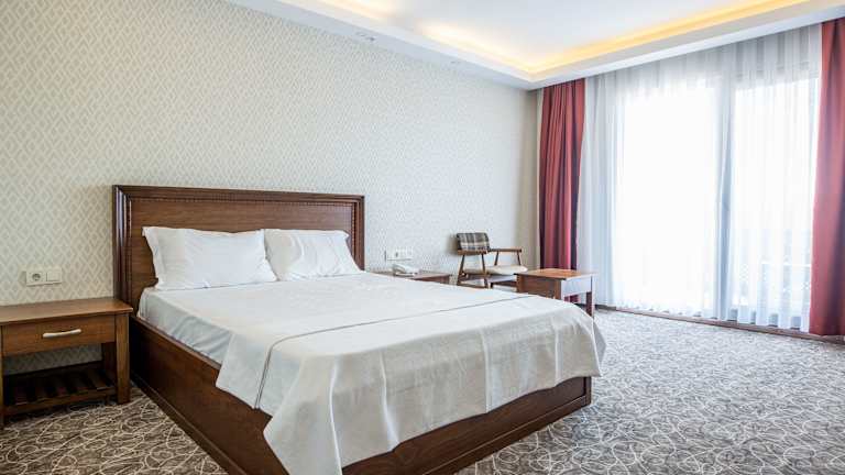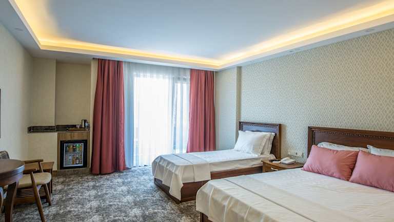 Die Zimmer im Hotel sind mit einer Klimaanlage, einem Flachbild-TV und einem eigenen Badezimmer ausgestattet. Weiterhin verfügen sie über einen Balkon mit Stadtblick. Zur Ausstattung gehören eine Minibar, Bettwäsche, Handtücher sowie Hausschuhe. Die Badezimmer bieten eine Dusche und eine Badewanne, sowie einen Haartrockner und Bademäntel. Familien- und Nichtraucherzimmer sind ebenfalls verfügbar.