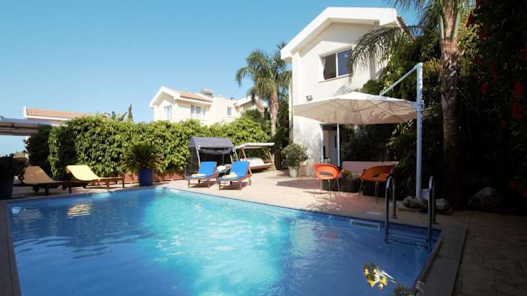 Die Helene Villa ist eine moderne und gut ausgestattete Unterkunft im Herzen von Protaras. Mit einem privaten Pool, einem Garten und einer möblierten Sonnenterrasse bietet sie alles, was Sie für einen entspannten Urlaub benötigen. WLAN und Fahrräder stehen Ihnen kostenlos zur Verfügung. Genießen Sie den Blick auf das Mittelmeer und die Berge von der Terrasse aus und erkunden Sie die Umgebung, darunter den berühmten Strand Fig Tree Bay, der nur 15 Gehminuten entfernt liegt.