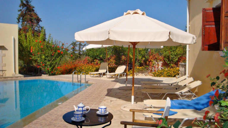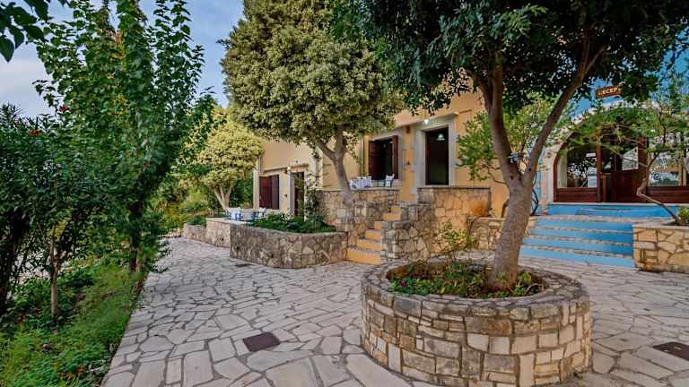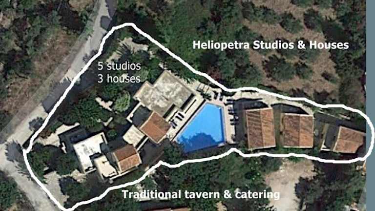 Heliopetra Studios bietet Übernachtungsmöglichkeiten in einem Ferienhaus mit einem Schlafzimmer. Die Unterkunft verfügt über einen Garten, eine Gemeinschaftslounge und eine Terrasse. Zu den weiteren Annehmlichkeiten gehören ein Außenpool und kostenfreies WLAN.