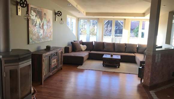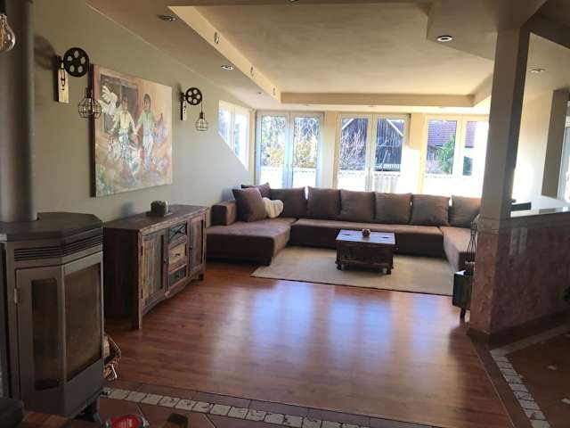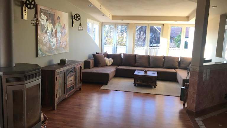 Helle, offene Dachgeschosswohnung mit Terrasse bietet eine elegante Unterkunft mit Gartenblick sowie einen Balkon. Die Ferienwohnung ist modern und bietet Übernachtungsmöglichkeiten mit einem eigenen Pool und kostenlosem WLAN.