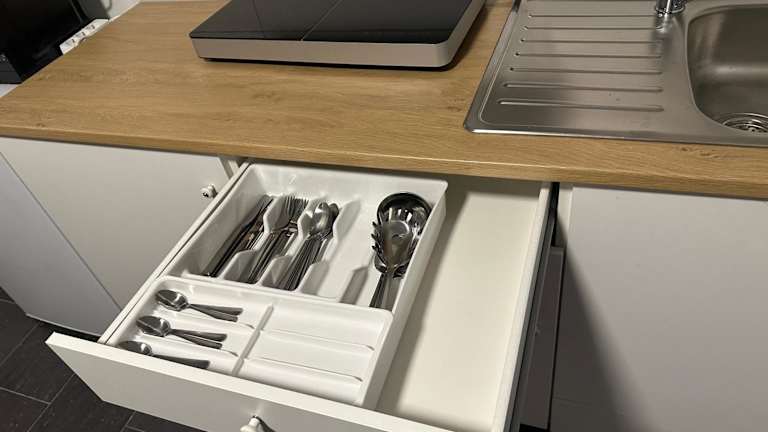 Die Ferienwohnung verfügt über ein Schlafzimmer, ein Wohnzimmer sowie eine voll ausgestattete Küche mit Kühlschrank und Kaffeemaschine. Ein Badezimmer mit Dusche und Haartrockner ist ebenfalls vorhanden. Handtücher und Bettwäsche werden zur Verfügung gestellt. Die Unterkunft bietet zudem Familienzimmer und neben einem Parkplatz sind Nichtraucherzimmer verfügbar.