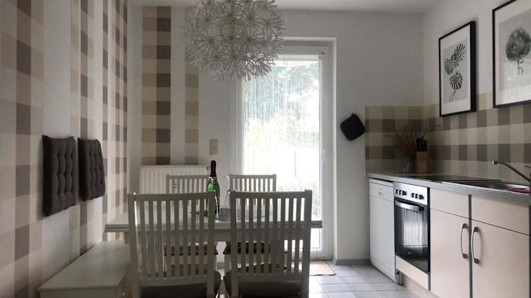 Helle Wohnung im Ostseebad ist eine Ferienwohnung, die eine Terrasse mit Gartenblick sowie eine gut ausgestattete Küche bietet. Kostenfreies WLAN ist in der gesamten Unterkunft verfügbar. Die Wohnung verfügt über ein Badezimmer mit Dusche und Haartrockner. Weitere Annehmlichkeiten umfassen Kabel TV und einen Garten mit Grillmöglichkeiten.