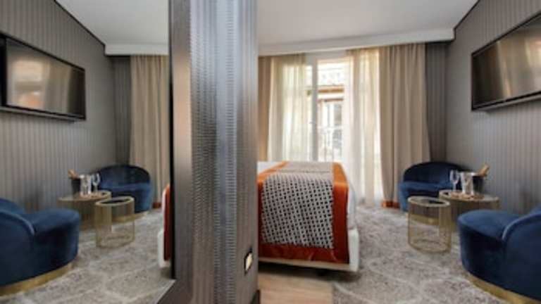 Die klimatisierten Zimmer sind ausgestattet mit einem Schreibtisch, einer Kaffeemaschine, einem Kühlschrank, einer Minibar, einem Safe, einem Flachbild-TV und einem eigenen Badezimmer mit einem Bidet. Zur Ausstattung gehören Bettwäsche und Handtücher. Einige Zimmer bieten einen Balkon oder Stadtblick.