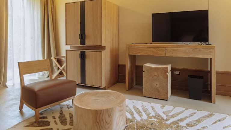 Die klimatisierten Zimmer sind komfortabel und verfügen über einen Schreibtisch, Flachbild-TV, Minibar, Safe und ein eigenes Bad mit kostenfreien Pflegeprodukten. Einige Zimmer bieten einen Gartenbereich oder einen Balkon mit Blick auf das Tal.