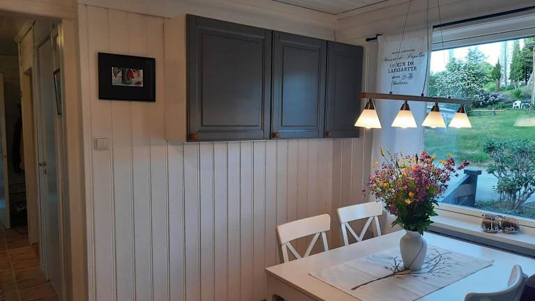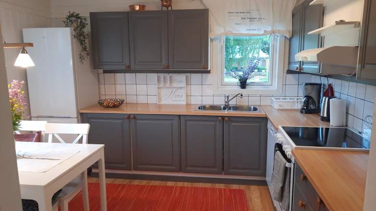 Es gibt eine gut ausgestattete Küche mit Kühlschrank und Geschirrspüler, die die Selbstverpflegung ermöglicht. Grillmöglichkeiten stehen ebenfalls zur Verfügung.