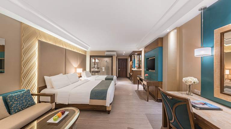 Das Henann Garden Resort verfügt über 230 Zimmer, die alle mit Kabel-TV, WLAN und einem Safe ausgestattet sind. Einige der Zimmer bieten einen Balkon mit Blick auf den Pool. Die Badezimmer sind mit Pflegeprodukten ausgestattet. Das Hotel bietet auch einen Geldwechsel- und Wäscheservice.