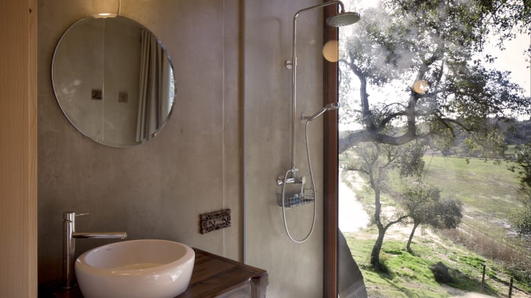 Die Herdade do Moinho Novo bietet einzigartige Themen-Bungalows inmitten einer idyllischen Umgebung in Canha, nur 35 Minuten von Lissabon entfernt. Genießen Sie die Ruhe eines Bauernhofs und nehmen Sie an den täglichen Aktivitäten teil. Die klimatisierten Bungalows sind individuell eingerichtet und verfügen über ein Schlafzimmer, ein eigenes Bad, eine Küchenzeile und einen gemütlichen Wohnbereich. Bereiten Sie Ihre eigenen Mahlzeiten zu und genießen Sie dabei den Blick auf den Garten. Die Unterkunft bietet auch vielfältige Freizeitmöglichkeiten wie Wandern, Radfahren und Reiten. Golfbegeisterte finden einen Golfplatz in nur 33 Minuten Entfernung. Die Gemeinde Pegões erreichen Sie in 15 Minuten und die Stadt Setúbal in einer Stunde. Der internationale Flughafen Lissabon ist eine 59-minütige Fahrt von der Herdade do Moinho Novo entfernt.