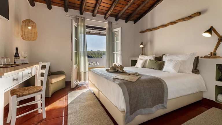 Die Zimmer im Herdade Do Sobroso sind im charmanten Landhausstil mit exotischen Elementen eingerichtet. Sie sind klimatisiert und verfügen über Annehmlichkeiten wie Kabel-TV, eine Minibar, einen Schreibtisch und ein eigenes Bad. Genießen Sie den Komfort und die Ruhe dieses charmanten Landhauses.