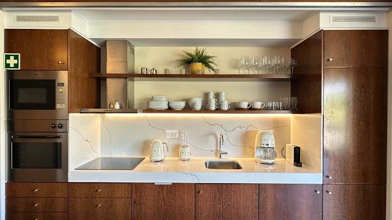 Die Ferienwohnung ist klimatisiert und besteht aus 2 Schlafzimmern, einem Wohnzimmer sowie einer voll ausgestatteten Küche mit Kühlschrank und Kaffeemaschine. Es gibt 2 Badezimmer mit Bidet und Dusche, und Handtücher sowie Bettwäsche werden zur Verfügung gestellt.