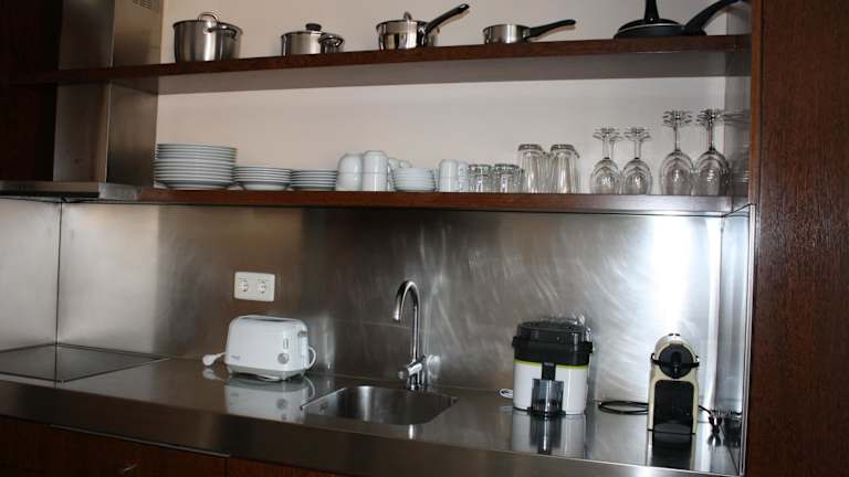 Die Unterkunft bietet ein Restaurant, in dem Mahlzeiten serviert werden. Eine voll ausgestattete Küche ist in der Ferienwohnung vorhanden, die mit einem Kühlschrank und einer Kaffeemaschine ausgestattet ist.