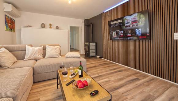 Die Ferienwohnung besteht aus zwei Schlafzimmern, einem Wohnzimmer und einer voll ausgestatteten Küche, die über einen Kühlschrank und eine Kaffeemaschine verfügt. Das Badezimmer ist mit einer Dusche und einem Haartrockner ausgestattet. Zudem werden Handtücher und Bettwäsche bereitgestellt.