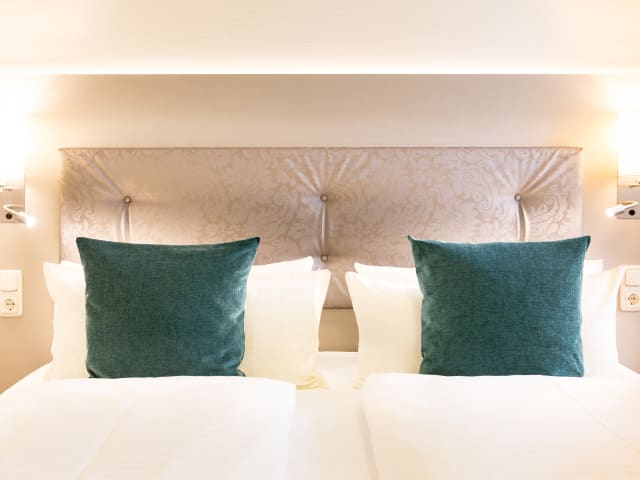 Unsere Einzelzimmer sind ca. 18 qm groß und mit einem King Size Bett (140 x 200 cm) ausgestattet. Unsere Doppelzimmer sind mit einem Doppelbett (180 cm x 200 cm) ausgestattet. Das Doppelzimmer (2 Räume, zum Teil mit Balkon) hat eine Größe von ca. 28 qm. Eine Aufbettung für eine 3. Person ist mit Aufpreis auf Anfrage möglich. Zur Ausstattung gehören ebenfalls Schreibtisch, Schranktresor, Kühlschrank sowie Wasserkocher (Welcome-Tray). Unsere ca. 35 qm großen Komfortzimmer Superior (2 Räume, aufgeteilt in Schlafraum sowie Wohnbereich) mit gemütlicher Sitzecke bietet ausreichend Platz um einen angenehmen Aufenthalt genießen zu können. Ein großer Schreibtisch sowie ausreichend Steckdosen sorgen dabei für eine angenehme Arbeitsmöglichkeit. Zur Ausstattung gehören ebenfalls Schranktresor, Telefon, Kühlschrank sowie Wasserkocher (Welcome-Tray). Alle Zimmer (EZ, Business-EZ, DZ oder KOMFORT) besitzen ein Bad und sind mit Dusche, WC, Fön, Kosmetikspiegel, Sat– TV und Schreibtisch ausgestattet. In allen Zimmern und öffendlichem Hotelbereich ist Internet über WLAN kostenfrei nutzbar.
