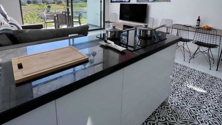 Die Ferienwohnung bietet ein separates Schlafzimmer, ein Wohnzimmer und eine voll ausgestattete Küche mit Kühlschrank und Geschirrspüler. Es gibt zwei Badezimmer, sowie Annehmlichkeiten wie Klimaanlage, WIFI und eine Terrasse mit Gartenblick. Handtücher und Bettwäsche werden bereitgestellt.