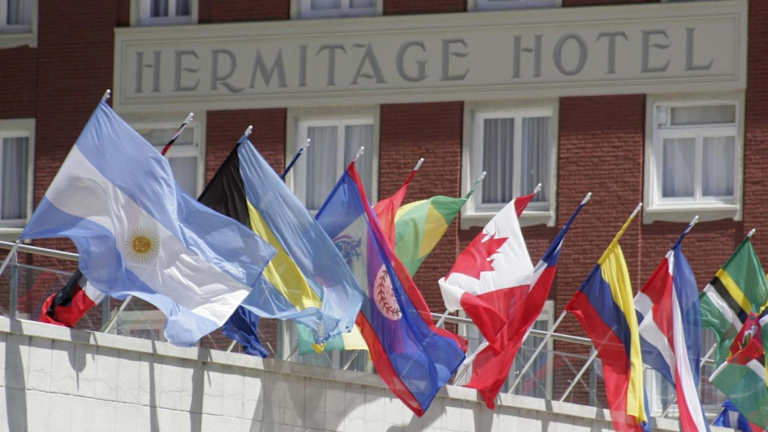 Das Hermitage Hotel befindet sich in Mar del Plata, direkt am Strand. Der Flughafen ist etwa 12 km entfernt, der Bahnhof ca. 3,5 km. Der Strand liegt nur etwa 100 m entfernt, während das Stadtzentrum rund 1 km entfernt ist. Ein Golfplatz ist ebenfalls in ca. 3,5 km zu erreichen.