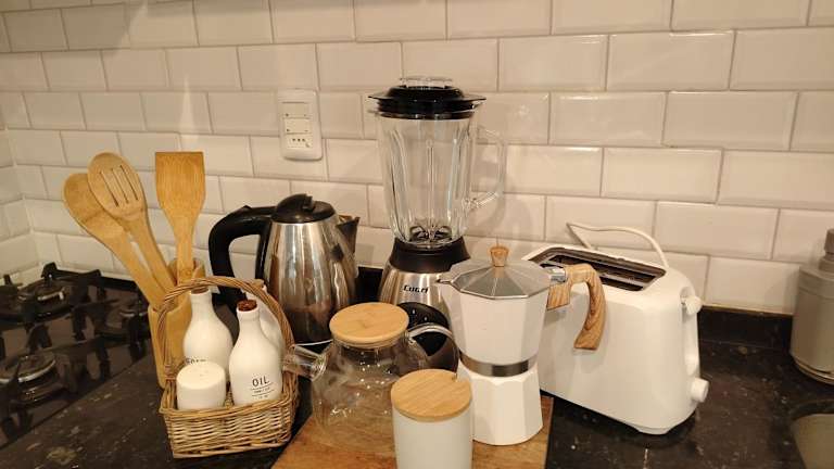 Das Ferienhaus besteht aus zwei Schlafzimmern, einem Wohnzimmer und einer voll ausgestatteten Küche. Die Küche beinhaltet einen Kühlschrank und einen Wasserkocher. Es gibt ein Badezimmer mit Dusche und einen Flachbild-TV. Die Unterkunft bietet zudem Klimaanlage und ist Nichtraucherzimmer.