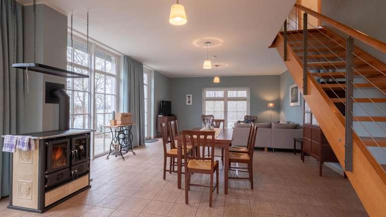 Das Herrenhaus Jürgenshof - Ferienhaus bietet eine komfortable Übernachtungsmöglichkeit mit Seeblick. Die Unterkunft verfügt über eine Terrasse und ist bestens ausgestattet für einen angenehmen Aufenthalt. Besondere Merkmale sind der Gartenblick sowie Annehmlichkeiten wie eine Sauna und ein Whirlpool.