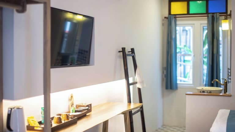Die Zimmer im Hetai Boutique House sind komfortabel und stilvoll eingerichtet. Jedes Zimmer verfügt über einen eigenen Sitzbereich und ein eigenes Badezimmer mit Dusche und kostenlosen Pflegeprodukten. Zur Ausstattung gehören auch ein TV, eine Klimaanlage und ein Kühlschrank. Einige Zimmer bieten zudem einen Balkon, von dem aus Sie die Umgebung genießen können.