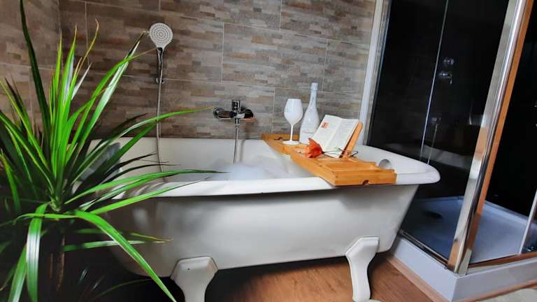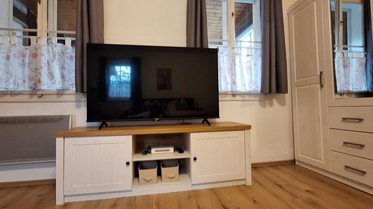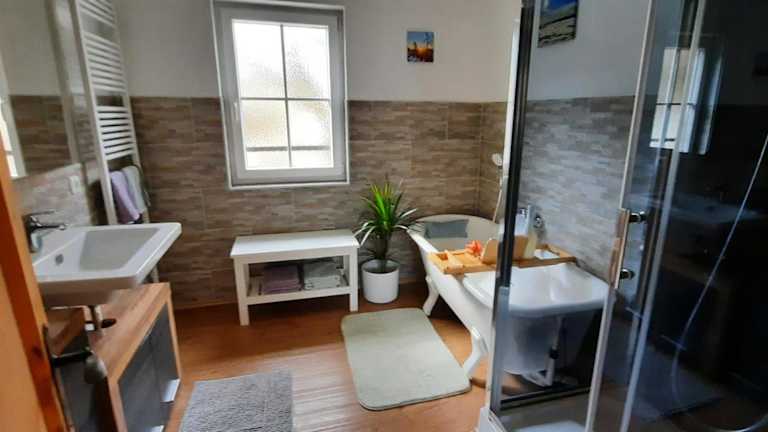 Das Ferienhaus verfügt über zwei Schlafzimmer sowie ein Badezimmer mit Dusche und Badewanne. Zur Ausstattung gehören zudem eine Spielekonsole, eine Küche mit Kühlschrank, Geschirrspüler und Ofen, sowie ein Wohnzimmer mit Sitz- und Essbereich. Handtücher und Bettwäsche werden bereitgestellt.
