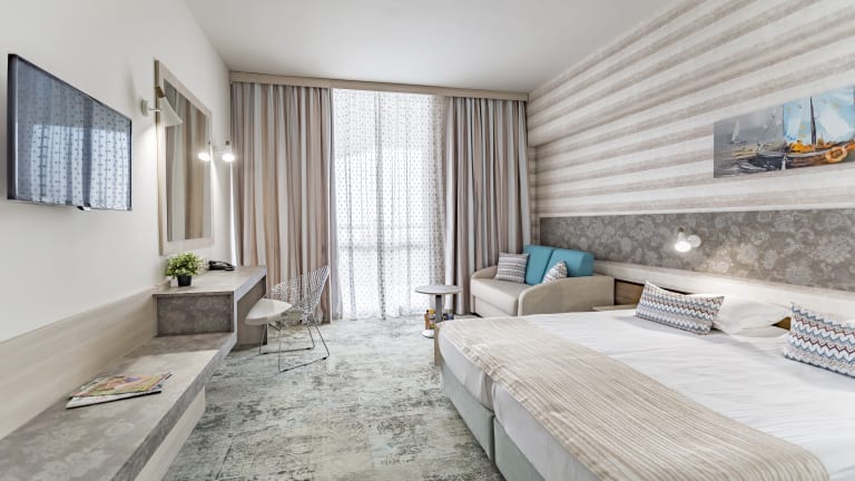 DZ (Imperial Sands) (2-3 Pers.) modern, hell und stillvoll eingerichtet mit Klimaanlage, Dusche, WC, Foehn, SAT TV, Flachbildshirm, Telefon, Minibar, Schlafsofa, Balkon. DZ Deluxe (Imperial Beach) sind bei gleicher Ausstatung geraeumiger mit Schlafsofa. Teilweise mit Meerblick buchbar. Familienzimmer (Imperial Sands) sind zwei Doppelzimmer mit Verbindungstuer. Studios (Imperial Beach) auch gleich ausgestattet wie die DZ Deluxe. Teilweise mit Meerblick buchbar. Apartments (Imperial Beach)- kombinierter Wohn-/Schlafraum und separater Schlafraum und zwei Badezimmer. Apartments (Imperial Sands)- 2 Schlafzimmer mit optisch getrenntem Wohnraum und Terrasse.