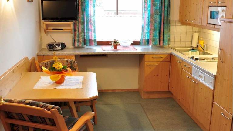 Die Wohneinheiten des Hiaslahof sind mit Parkettböden ausgestattet und verfügen über eine voll ausgestattete Küche mit Kühlschrank, Geschirrspüler, Mikrowelle und Herdplatte. Zu den Annehmlichkeiten gehören ein Essbereich, ein Flachbild-TV mit Satellitenkanälen sowie ein eigenes Badezimmer mit Dusche und Haartrockner. Im Zimmer sind auch Kaffeemaschine und Wasserkocher vorhanden.