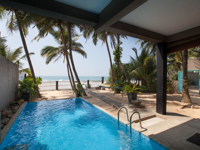 Die Hikks Villa in Hikkaduwa bietet eine ideale Unterkunft für Selbstversorger mit einem Außenpool und kostenfreiem WLAN. Die klimatisierten Zimmer verfügen über eine voll ausgestattete Küchenzeile und einen Balkon mit Meerblick. Genießen Sie die Annehmlichkeiten wie den Grillplatz und die Wassersporteinrichtungen. Der Strand und andere Sehenswürdigkeiten sind bequem zu erreichen. Kostenfreie Parkplätze stehen zur Verfügung.
