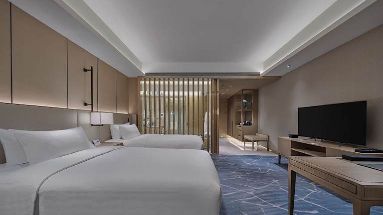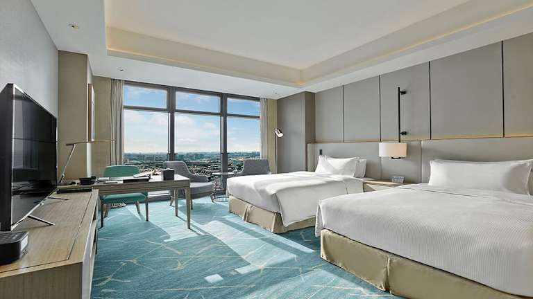 Die Zimmer im Hilton Beijing Tongzhou sind komfortabel und stilvoll eingerichtet. Jedes Zimmer verfügt über Annehmlichkeiten wie Klimaanlage, Sat-TV, Kühlschrank, Wasserkocher, Dusche, Haartrockner und Schreibtisch. Die Zimmer bieten auch einen Kleiderschrank und ein eigenes Badezimmer. Die Gäste können sich auf einen angenehmen und entspannten Aufenthalt freuen.