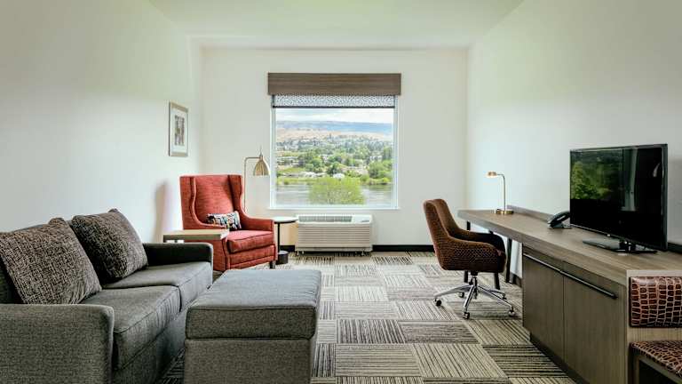 Die Zimmer im Hilton Garden Inn Wenatchee, Wa sind geräumig und komfortabel und bieten Annehmlichkeiten wie einen Flachbild-Kabel-TV, einen Kühlschrank, eine Kaffeemaschine und kostenfreies WLAN. Die Badezimmer sind mit einer Dusche und kostenfreien Pflegeprodukten ausgestattet. Es gibt auch rollstuhlgerechte Zimmer mit barrierefreien Badezimmern.