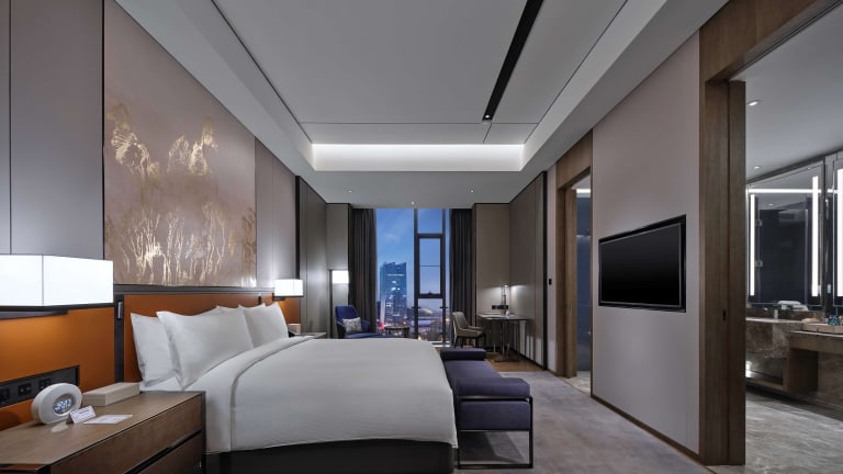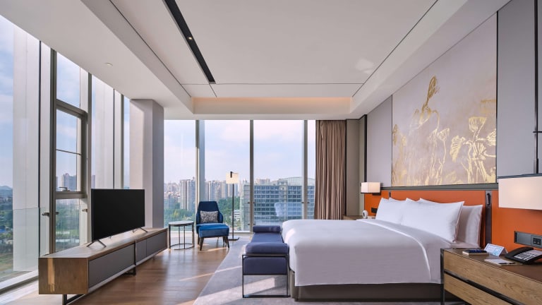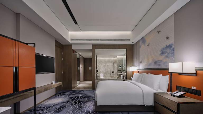 Die klimatisierten Zimmer im Hilton Guiyang bieten Komfort und eine angenehme Atmosphäre. Jedes Zimmer verfügt über einen Schreibtisch, einen Safe, einen TV und ein eigenes Bad mit Dusche. Ein Kleiderschrank ist ebenfalls vorhanden, um Ihre Kleidung ordentlich zu verstauen.