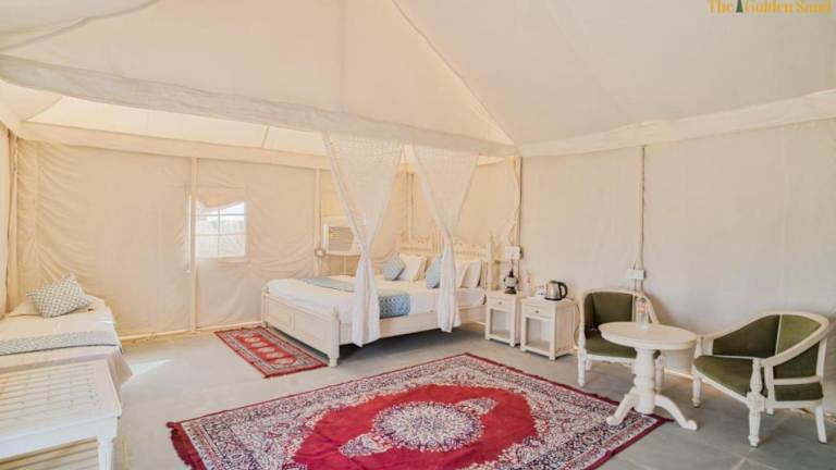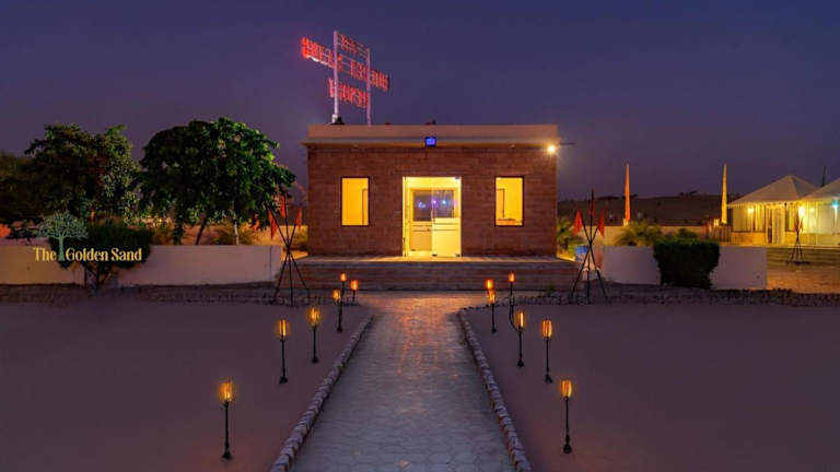 The Golden Sand Resort & Camp ist ein Hotel, das Übernachtungsmöglichkeiten in einer naturnahen Umgebung mit Garten bietet. Die Unterkunft verfügt über einen kostenlosen Privatparkplatz, eine Terrasse sowie ein Restaurant. Das Hotel bietet eine rund um die Uhr besetzte Rezeption und Zimmerservice.