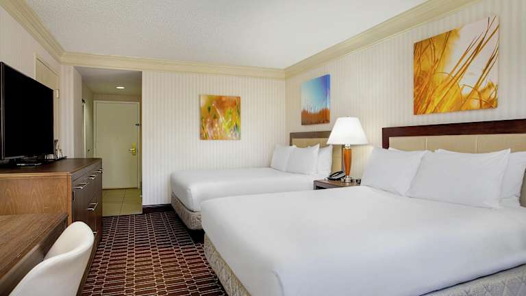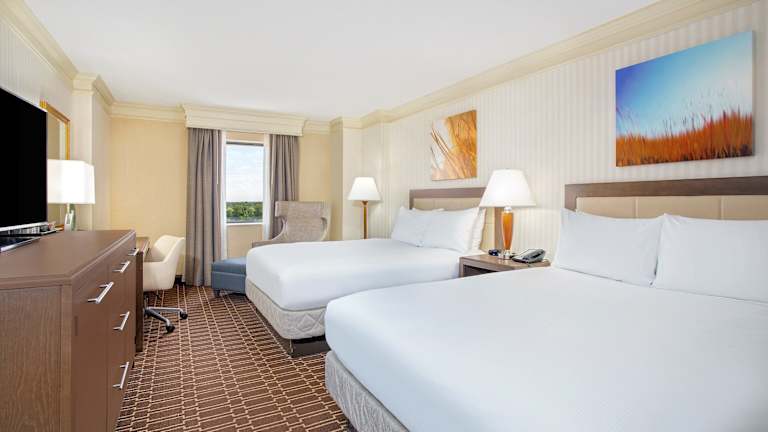 Die Zimmer sind mit Teppichböden ausgestattet und bieten ein Doppelbett oder ein Kingsize-Bett. Zu den Annehmlichkeiten gehören eine Klimaanlage, individuell regulierbare Heizung, eine Tee-/Kaffeemaschine, ein Bügelset sowie eine Hosenpresse. Zudem sind ein Telefon mit Direktwahl, ein TV-Gerät mit Satelliten-/Kabelempfang und ein Badezimmer mit Dusche und Badewanne vorhanden. Es können auch rollstuhlgerechte und Familienzimmer gebucht werden.