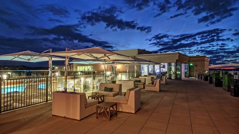 • Der Rooftop-Pool und die Atmosphäre sind sehr ansprechend.