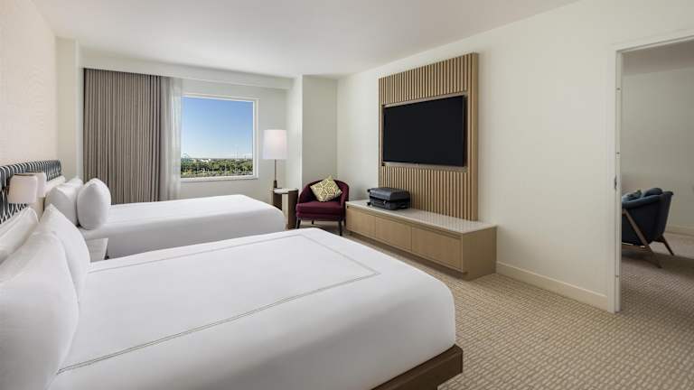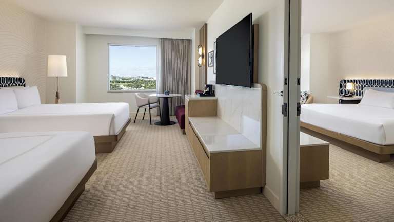 Die Zimmer im Hilton Orlando sind hell und modern eingerichtet und bieten den Gästen allen Komfort, den sie für einen angenehmen Aufenthalt benötigen. Jedes Zimmer verfügt über einen Flachbildfernseher, einen großen Schreibtisch mit ergonomischem Stuhl und kostenfreies WLAN. Die Gäste können sich in den komfortablen Betten entspannen und die schöne Aussicht genießen.
