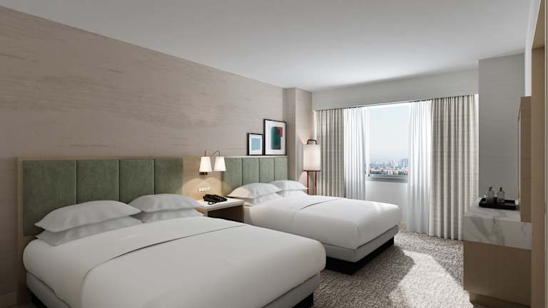 Die Zimmer sind mit einer Klimaanlage, individuell regulierbarer Heizung und komfortablen Betten ausgestattet. Zu den weiteren Annehmlichkeiten gehören ein Safe, eine Minibar, ein Kühlschrank, eine Mikrowelle und eine Tee-/Kaffeemaschine. Jedes Zimmer verfügt über ein Badezimmer mit Dusche und Badewanne. Zimmer mit Balkon oder Terrasse bieten Sicht auf die Stadt. Es sind auch rollstuhlgerechte Zimmer verfügbar.