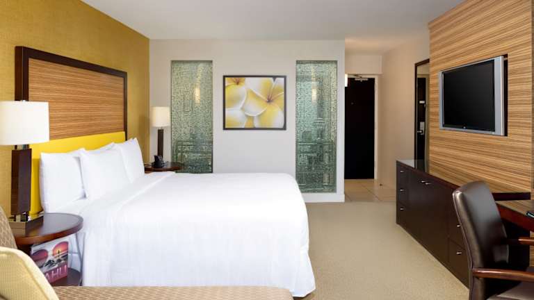 Das Hilton Waikiki Beach Hotel bietet 1310 Zimmer, die alle mit modernen Annehmlichkeiten ausgestattet sind. Die Zimmer verfügen über einen Balkon, einen Flachbild-TV, einen Kühlschrank, eine Kaffeemaschine und ein eigenes Bad mit kostenlosen Pflegeprodukten. WLAN ist im gesamten Hotel kostenlos verfügbar.