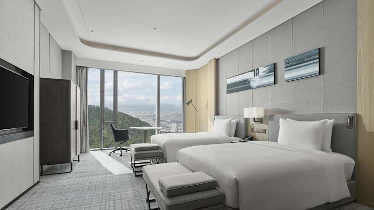 Die Zimmer im Hilton Zhuji sind komfortabel und stilvoll eingerichtet. Jedes Zimmer verfügt über eine Klimaanlage, einen Kleiderschrank, einen Wasserkocher, eine Minibar, einen Safe, einen TV und ein eigenes Bad mit Dusche. Die Zimmer sind sauber und gut gepflegt und bieten Ihnen eine angenehme Atmosphäre während Ihres Aufenthalts. Bettwäsche und Handtücher werden gestellt.