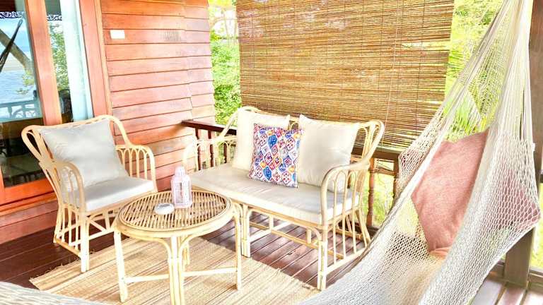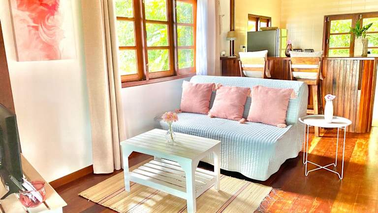 Verbringen Sie einen entspannten Urlaub im Hin Kong Sunset Beach Front House auf Koh Phangan. Genießen Sie den eigenen Strandbereich, den malerischen Meerblick und die vielfältigen Aktivitäten wie Wandern, Schnorcheln und Radfahren. Das klimatisierte Ferienhaus bietet Ihnen ein gemütliches Schlafzimmer, ein Wohnzimmer, eine voll ausgestattete Küche und ein Badezimmer. Freuen Sie sich zudem auf kostenfreies WLAN, einen Garten, eine Terrasse und einen Grill. Fahrradverleih und Autovermietung stehen Ihnen zur Verfügung. Der Strand Hin Kong und der Strand Srithanu sind nur wenige Schritte bzw. 1,2 km entfernt.
