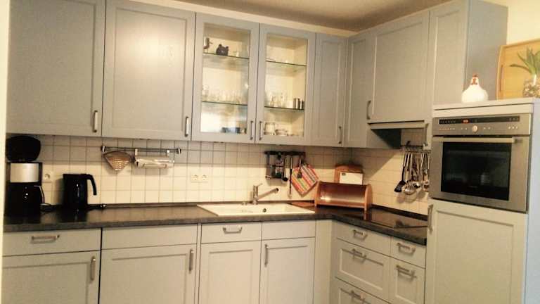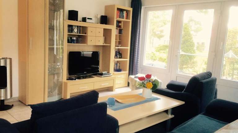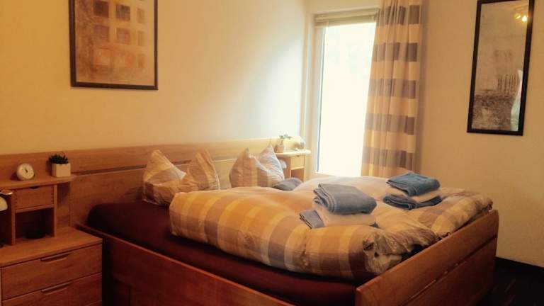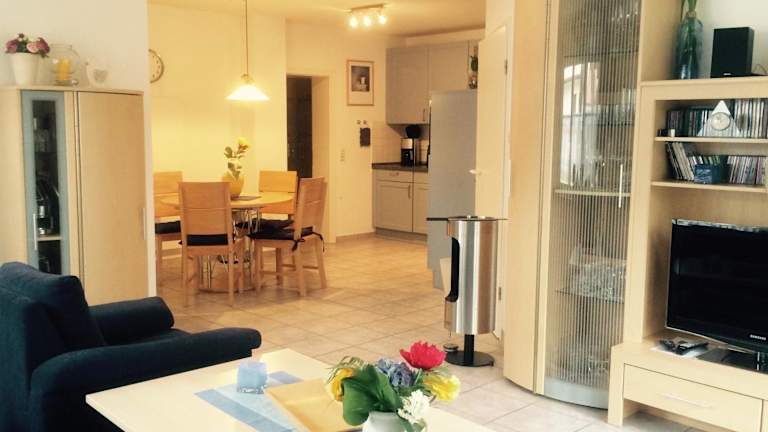 Die Ferienwohnung umfasst ein Schlafzimmer, ein Wohnzimmer sowie eine gut ausgestattete Küchenzeile, die mit einem Kühlschrank und einem Geschirrspüler ausgestattet ist. Handtücher und Bettwäsche werden bereitgestellt.