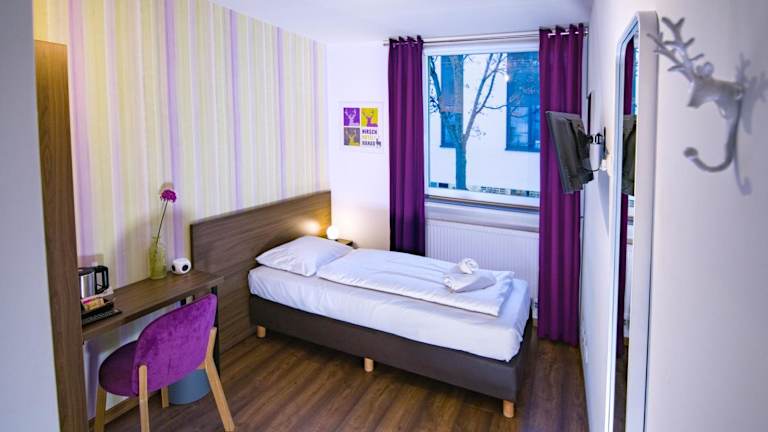 Jedes Zimmer im Hirsch Hotel Hanau ist komfortabel eingerichtet und bietet Annehmlichkeiten wie einen Schreibtisch, einen Flachbild-TV und ein eigenes Badezimmer. Bettwäsche und Handtücher werden gestellt und in den Zimmern gibt es auch einen Kleiderschrank und einen Wasserkocher.