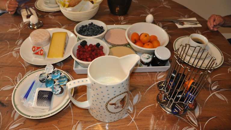 Das Bed & Breakfast auf der Hirschfarm bietet ein köstliches kontinentales oder vegetarisches Frühstück, das im Preis inbegriffen ist. Beginnen Sie Ihren Tag mit einer Vielzahl von frischen Speisen und Getränken, um Ihre Energiereserven aufzufüllen.