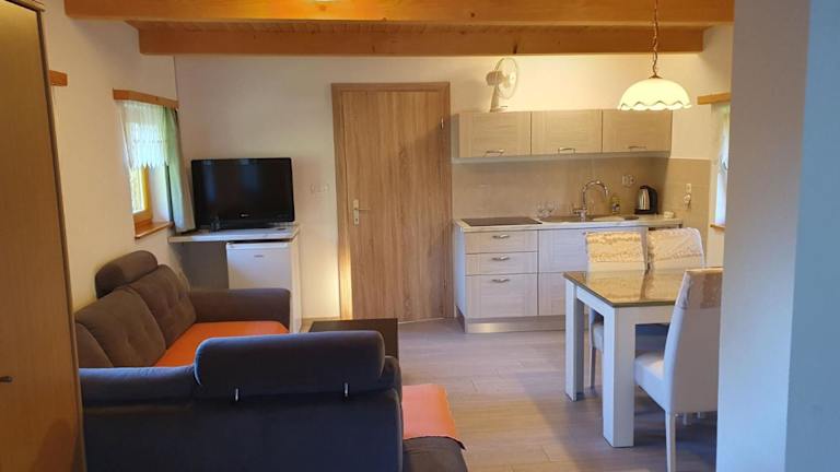 Das Hiška ob gozdu verfügt über ein gemütliches Ferienhaus mit 1 Schlafzimmer. Das Wohnzimmer ist mit einem Flachbild-TV ausgestattet und bietet eine entspannte Atmosphäre zum Entspannen. Die voll ausgestattete Küche ermöglicht es Ihnen, Ihre eigenen Mahlzeiten zuzubereiten und sich wie zu Hause zu fühlen. Das Badezimmer verfügt über eine Dusche und bietet alle notwendigen Annehmlichkeiten.