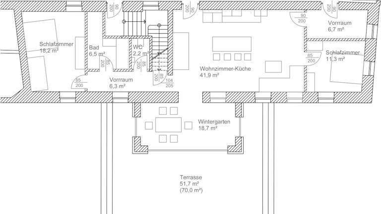 Die Ferienwohnung umfasst 2 Schlafzimmer, ein Wohnzimmer, eine gut ausgestattete Küche sowie ein Badezimmer mit Dusche und Badewanne. Zudem ist eine Terrasse mit Gartenblick vorhanden. Handtücher und Bettwäsche werden bereitgestellt.