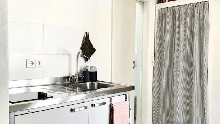 Es gibt vor Ort ein Café. Die gut ausgestattete Küche in der Ferienwohnung ermöglicht den Gästen, sich selbst zu versorgen.