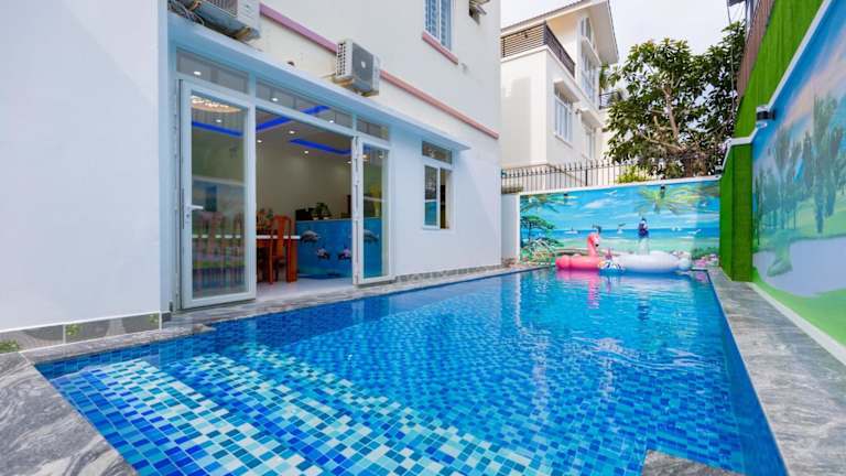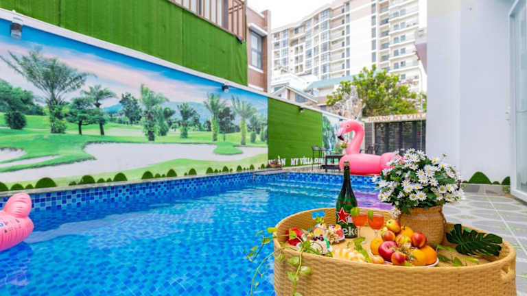 Das Hoàng My Villa B2-9 in Vũng Tàu ist eine ideale Unterkunft für einen entspannten Strandurlaub. Die Villa bietet zahlreiche Annehmlichkeiten wie einen Außenpool, kostenfreies WLAN und kostenfreie Fahrräder. Das freundliche Personal steht Ihnen zur Verfügung und spricht mehrere Sprachen. Die Villa ist gut ausgestattet mit einer Küche, einem Wohnzimmer, mehreren Schlaf- und Badezimmern sowie einem Whirlpool. Die Lage ist perfekt für Aktivitäten wie Wandern und Radfahren.